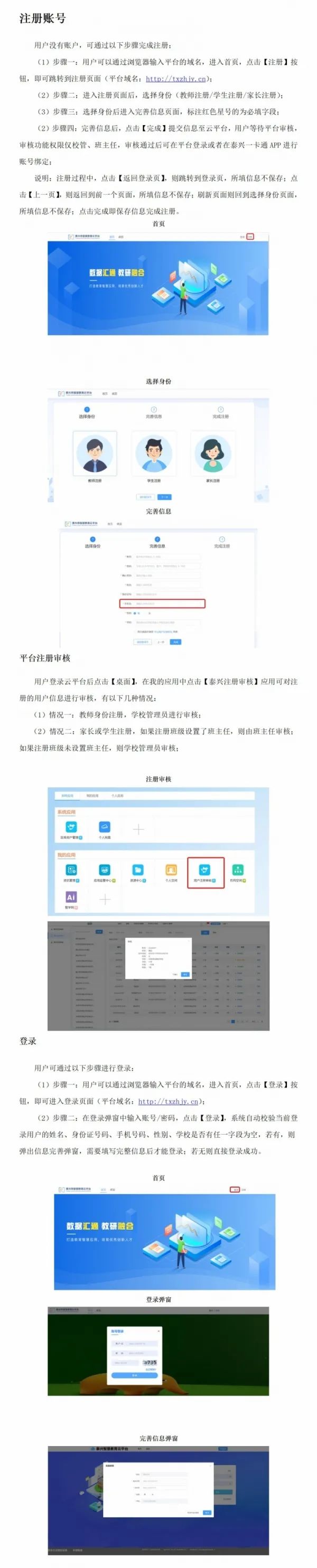 用戶登錄泰興一卡通APP,底部菜單點擊【生活服務】,在【校園教育】中點擊應用,有以下三種情況: 情況一:用戶沒有泰興市智慧教育云平臺賬號,進入賬號綁定頁面,可根據友情提示,在電腦上搜索”泰興市智慧教育云平臺“完成注冊,具體步驟參考下圖: