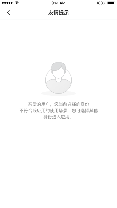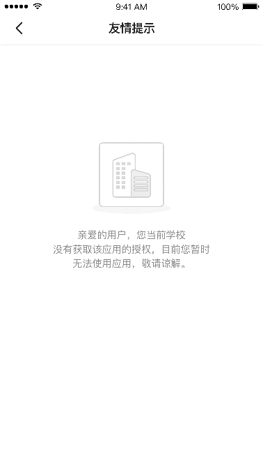 選擇身份 友情提示用戶登錄泰興一卡通APP,底部菜單點擊【生活服務】,在【校園教育】中點擊應用,成功綁定賬號并選擇身份后,有以下四種情況:情況一:用戶綁定的賬號選擇的身份,該應用有權限,則不進入友情提示頁面,直接進入該應用頁面;情況二:用戶綁定賬號機構或學校沒有該應用權限,進入友情提示頁;情況三:用戶綁定賬號的機構或學校有應用權限,但是用戶選擇的身份沒有該應用權限,進入友情提示頁;情況四:用戶綁定的賬號選擇的身份沒有應用權限,進入友情提示頁;