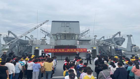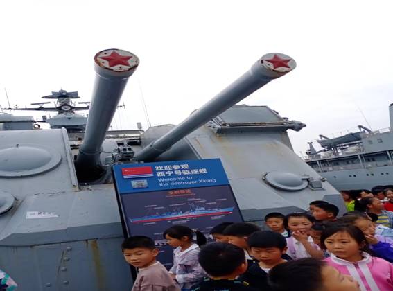 第二站,師生們來到高港海軍艦艇文化園,跟隨導(dǎo)游游覽了驅(qū)逐艦、護(hù)衛(wèi)艦、補給艦三艘艦艇,通過聆聽海軍的發(fā)展歷程,師生們認(rèn)識到我國綜合實力的強大、守衛(wèi)我國藍(lán)色國土的重要性;通過對海軍五大兵種的構(gòu)成及主要武器裝備的介紹,師生們進(jìn)一步了解了我國海軍的發(fā)展和現(xiàn)狀,明白了海洋對于國家的重要性。