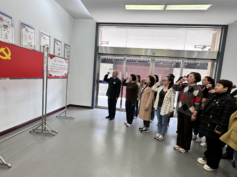 全體黨員教師在鮮紅的黨旗下,高舉右拳,重溫?zé)o悔誓言,不忘入黨初心。(通訊員 史樂樂 錢天添) |