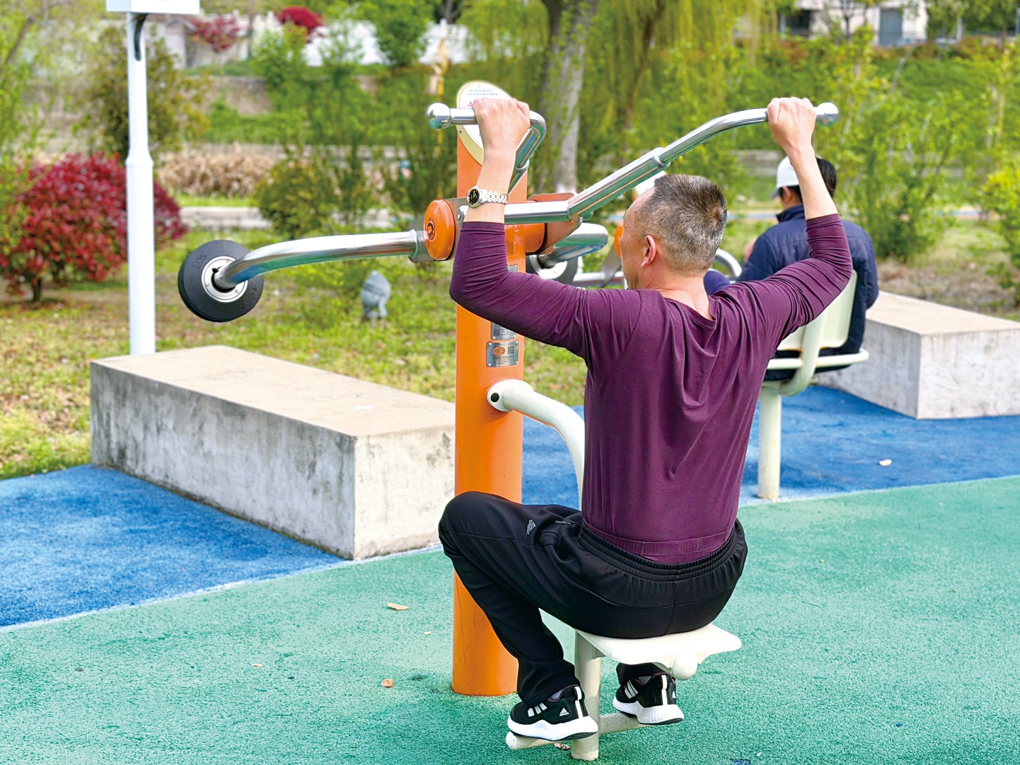 這樣的“活力樂園”并非個(gè)例。“十四五”以來,泰州市累計(jì)建成大型公共體育場館3個(gè)、體育公園(廣場)52個(gè)、健身步道530余公里,其中包含輪滑主題公園、老年康復(fù)體育公園、親子運(yùn)動(dòng)樂園等一批全年齡友好型特色公園。城市社區(qū)“10分鐘體育健身圈”和農(nóng)村鄉(xiāng)鎮(zhèn)“15分鐘體育健身圈”實(shí)現(xiàn)全覆蓋,全市人均體育場地面積躍居全省第一方陣。 大規(guī)模規(guī)劃建設(shè),如何確保健身設(shè)施長效可用?泰州堅(jiān)持建管并重。在新高橋體育公園,每件健身器材均貼有二維碼,市民發(fā)現(xiàn)損壞可掃碼報(bào)修,后臺(tái)能及時(shí)掌握故障情況,實(shí)現(xiàn)精準(zhǔn)維護(hù)。“2025年,我們更新老舊健身設(shè)施器材3000件,同時(shí)建立全鏈條管護(hù)機(jī)制,確保設(shè)施建好、管好、用好。”泰州市體育局群體處相關(guān)負(fù)責(zé)人介紹。 萬名指導(dǎo)員在崗,健身更有章法