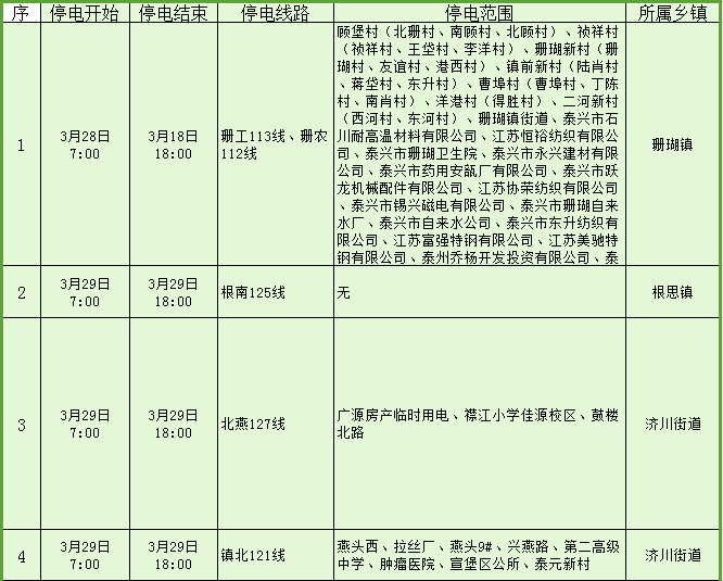 停電公告(03月27日-04月2日)