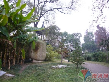 【湖石假山】位于風(fēng)光帶入口處,合“開門見山”之意。假山由來自安徽巢湖的湖石堆積而成,用石料500噸。山上建一亭,端坐亭中,環(huán)視四周,盡攬風(fēng)景;假山垂一幕瀑布,取意“高山流水”;山下有宛延山洞和臨水觀景平臺(tái),山清水秀,山水相連,構(gòu)思精妙;山前立石一塊,上書毛體“江山如此多嬌”,題寫者乃原省文化廳副廳長、原省國畫院院長趙緒成。 【噴霧廣場(chǎng)】位于湖石假山對(duì)岸。噴霧池面積100平方米,含100個(gè)噴頭,噴出的霧氣富含氧氣和負(fù)離子,在陽光照射下,若隱若現(xiàn),可見彩虹高掛,煞是好看。廣場(chǎng)周圍有圓亭、回廊,供游人小憩。