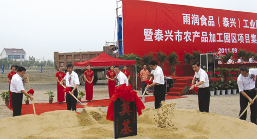 9月8日上午,市農(nóng)產(chǎn)品加工園區(qū)舉行雨潤食品(泰興)工業(yè)園暨農(nóng)產(chǎn)品加工園區(qū)重大項(xiàng)目集中開工儀式。這次集中開工的項(xiàng)目有6個(gè),總投資額近20億元。泰州市委副書記王守法,泰州市副市長丁士宏、盧佩民,我市市委書記張兆江,市長高亞梓,市領(lǐng)導(dǎo)張澤民、劉榮華、張偉、耿元進(jìn)出席開工儀式。 張兆江在致辭中說,雨潤集團(tuán)(泰興)食品工業(yè)園項(xiàng)目奠基暨市農(nóng)產(chǎn)品加工園區(qū)重大項(xiàng)目集中開工,是農(nóng)產(chǎn)品加工園區(qū)建設(shè)過程中的一件喜事,更是全市產(chǎn)業(yè)轉(zhuǎn)型發(fā)展過程中的一件大事。這次集中開工的6個(gè)項(xiàng)目,既是大家前一階段埋頭苦干的豐碩成果,更是今后農(nóng)產(chǎn)品加工園區(qū)發(fā)展和全市農(nóng)業(yè)現(xiàn)代化的希望所在、潛力所在。特別是雨潤集團(tuán)(泰興)食品工業(yè)園項(xiàng)目,投資總量大,產(chǎn)業(yè)帶動(dòng)性強(qiáng),創(chuàng)造就業(yè)機(jī)會(huì)多。項(xiàng)目建成后,必將帶動(dòng)我市高效規(guī)模農(nóng)業(yè)的加快發(fā)展,進(jìn)一步提升農(nóng)產(chǎn)品加工園區(qū)的影響力和競(jìng)爭力。 這次集中開工的6個(gè)項(xiàng)目分別是雨潤集團(tuán)投資的雨潤食品泰興工業(yè)園項(xiàng)目,江蘇鑫晨農(nóng)業(yè)科技有限公司投資的1.5萬噸級(jí)農(nóng)產(chǎn)品保鮮冷藏倉儲(chǔ)及物流項(xiàng)目,臺(tái)灣福昌集團(tuán)投資的江蘇福茂生物科技有限公司食用菌項(xiàng)目,泰州市龍洋木業(yè)有限公司高檔家具項(xiàng)目,泰興市新源農(nóng)產(chǎn)品加工投資有限公司投資的內(nèi)港池項(xiàng)目,園區(qū)農(nóng)民集中居住地二期工程。6個(gè)項(xiàng)目總投資近20億元。其中雨潤集團(tuán)投資規(guī)模最大,帶動(dòng)性最強(qiáng),總投資約10億元,建設(shè)年屠宰加工200萬頭生豬,年屠宰分割6000萬羽家禽及其配套工程,項(xiàng)目達(dá)產(chǎn)后將形成年銷售收入約40億元,年稅收約4000萬元,直接創(chuàng)造就業(yè)崗位2000個(gè),帶動(dòng)相關(guān)配套產(chǎn)業(yè)8000人就業(yè),為泰興和農(nóng)產(chǎn)品加工園區(qū)創(chuàng)造新的經(jīng)濟(jì)增長點(diǎn)。 王守法在開工儀式上指出,泰興市農(nóng)產(chǎn)品加工園區(qū)的建設(shè),為泰州市農(nóng)產(chǎn)品的加工升值尋求了一條新路,尤其是雨潤等大型龍頭企業(yè)的加盟,加快了泰州地區(qū)農(nóng)產(chǎn)品加工水平的升級(jí)換代。他希望我市為企業(yè)的開工建設(shè)做好各項(xiàng)基礎(chǔ)準(zhǔn)備工作,各開工企業(yè)也要搶抓時(shí)間,快速優(yōu)質(zhì)施工,讓企業(yè)早建設(shè),早投產(chǎn),早見效。 【新聞鏈接】市農(nóng)產(chǎn)品加工園區(qū):努力打造國內(nèi)最大的畜禽產(chǎn)品加工基地 經(jīng)過三年多的打拼,市農(nóng)產(chǎn)品加工園區(qū)基礎(chǔ)設(shè)施基本到位,良好的投資環(huán)境引來了國內(nèi)多家國家級(jí)龍頭企業(yè)的加盟,500萬頭的生豬、6000萬羽家禽的屠宰、加工能力,將使這里成為國內(nèi)最大的畜禽產(chǎn)品加工聚集地。 市農(nóng)產(chǎn)品加工園區(qū)建區(qū)三年來,累計(jì)投入4.26億元,完成了一期工程“三路兩橋”及綠化、亮化、水電管網(wǎng)等配套建設(shè)工程,今年下半年又迅速啟動(dòng)了二期工程“三路三橋兩河”建設(shè),目前園區(qū)“兩橫五縱”的路網(wǎng)框架基本形成,年內(nèi)基本能全線貫通。 在加強(qiáng)園區(qū)基礎(chǔ)設(shè)施建設(shè)的同時(shí),招商工作同步進(jìn)行。已投產(chǎn)的江蘇百匯農(nóng)發(fā)公司年設(shè)計(jì)生豬屠宰加工能力為300萬頭,即將開工建設(shè)的雨潤食品泰興工業(yè)園年設(shè)計(jì)生豬屠宰加工能力為200萬頭,家禽年屠宰、加工量為6000萬羽,方圓8平方公里的泰興市農(nóng)產(chǎn)品加工園區(qū)將誕生全國最大的畜禽產(chǎn)品屠宰加工集聚區(qū)。 |