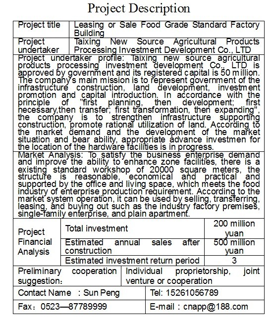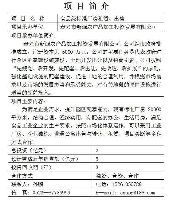 食品級(jí)標(biāo)準(zhǔn)廠房租賃、出售