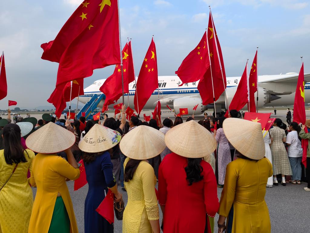 習(xí)近平總書記說,中共二十大勝利召開后,我第一時間邀請阮富仲總書記訪華,此次我又以對越南國事訪問作為今年中國外交圓滿收官,具有重要意義。中越兩黨領(lǐng)導(dǎo)人親自擘畫兩黨兩國關(guān)系發(fā)展,是我們的良好傳統(tǒng)。此訪期間,我們共同宣布構(gòu)建具有戰(zhàn)略意義的命運共同體,使中越關(guān)系站在新的歷史起點上,必將推動中越關(guān)系邁上新臺階。 離開河內(nèi)赴機場途中,當(dāng)?shù)孛癖姾腿A僑華人聚集在道路兩旁,揮舞中越兩國國旗,熱烈歡送習(xí)近平總書記,并祝賀訪問取得圓滿成功。 越南國會主席王庭惠,越共中央政治局委員、中央書記處書記、中央內(nèi)政部部長潘庭濯,越共中央書記處書記、中央對外部部長黎懷忠等越南黨政領(lǐng)導(dǎo)人和地方代表到機場送行。