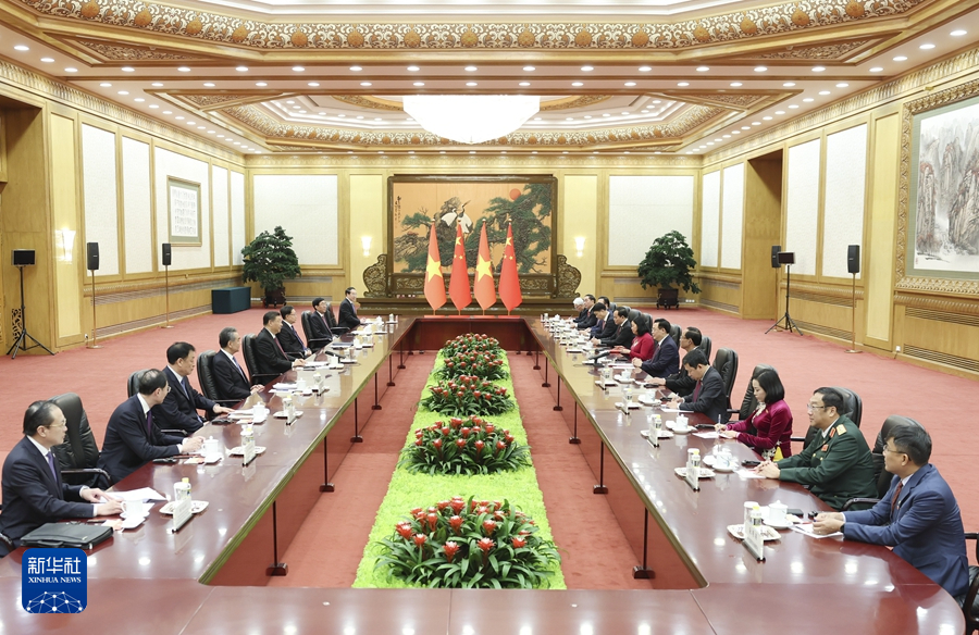 4月8日,國家主席習近平在北京人民大會堂會見越南國會主席王庭惠。新華社記者 丁海濤 攝 習近平請王庭惠轉達對阮富仲總書記的親切問候。習近平指出,去年年底我訪問越南期間,和阮富仲總書記共同宣布構建具有戰(zhàn)略意義的中越命運共同體,開啟了中越關系新篇章。在雙方共同努力下,我同阮富仲總書記達成的共識正在得到落實。志同道合、命運與共是中越關系最鮮明的特征,“同志加兄弟”是中越兩黨兩國傳統(tǒng)友誼最生動的寫照。雙方要共同努力,推動中越命運共同體建設取得更多成果,服務各自現代化建設,更好造福兩國人民,也為世界社會主義事業(yè)作出更大貢獻。 習近平強調,當前,國際和地區(qū)形勢發(fā)生深刻復雜變化,捍衛(wèi)社會主義制度、維護國家穩(wěn)定和發(fā)展,是中越雙方共同利益所在。雙方要以高水平互信鑄牢中越命運共同體意識,以高質量合作夯實中越命運共同體根基,以高度政治智慧推進中越命運共同體建設。中方愿同越方加強治黨治國理政經驗交流,發(fā)揮好中越雙邊合作指導委員會的統(tǒng)籌協(xié)調作用,加快推進共建“一帶一路”倡議同“兩廊一圈”戰(zhàn)略對接,豐富青年、友城等渠道交流。希望雙方立法機構深化各層級交流合作,加強立法監(jiān)督經驗等互學互鑒,為增進兩國民間友好發(fā)揮重要作用。