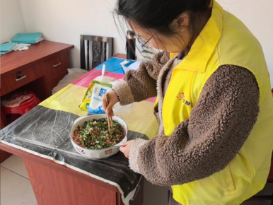 活動當(dāng)天,志愿者們早早來到敬老院,提前采購了新鮮的豬肉、蔬菜、餛飩皮等食材,在食堂里分工協(xié)作、忙而有序。切菜、調(diào)餡、搟皮、包餛飩,大家默契配合,一個個飽滿圓潤、形態(tài)各異的餛飩在志愿者們的手中快速成型,空氣中彌漫著食材的鮮香與歡樂的氣息。志愿者們一邊包餛飩,一邊與老人們親切交談,關(guān)切地詢問他們的身體狀況和生活起居,傾聽老人們講述過去的故事,現(xiàn)場氛圍溫馨而熱鬧。 “你們真是有心了,每年都來看我們,還親手給我們包餛飩,吃在嘴里暖在心里啊!”今年82歲的張大爺看著忙碌的志愿者們,臉上洋溢著幸福的笑容。志愿者們耐心地為行動不便的老人整理衣物、修剪指甲,用貼心的舉動溫暖著每一位老人的心。對于部分無法到食堂就餐的老人,志愿者們將煮好的餛飩細(xì)心打包,送到老人的房間里,確保每位老人都能及時品嘗到這份暖心美食。