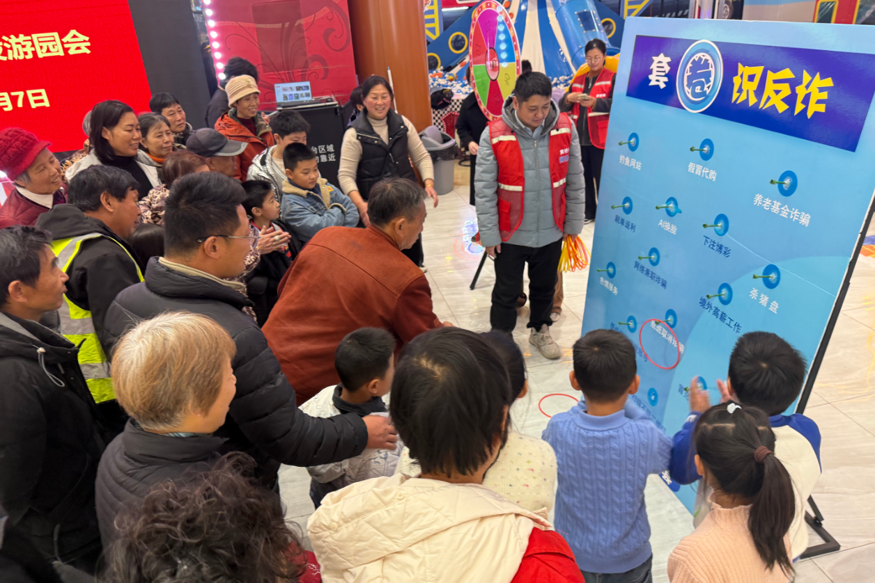 趣味游戲,筑牢安全“防火墻” 在黃橋大夢想城內(nèi),泰興市黃橋鎮(zhèn)琴韻社區(qū)設計了一場與眾不同的趣味反詐活動。活動創(chuàng)新采用“套圈識反詐”的互動形式讓居民在游戲中學習防騙知識。活動現(xiàn)場,一個個標注著“刷單返利”“網(wǎng)絡兼職詐騙”“冒充客服”等字樣的標識牌整齊排列。參與者套中哪個“詐騙陷阱”,琴韻社區(qū)志愿者便結合真實案例講解該手法的套路與防范要領。不少居民一邊瞄準投圈,一邊討論著身邊聽過的類似騙局,在互動體驗中加深了對詐騙伎倆的認知。“原來接到謊稱退款的電話有這么多講究,這下可算弄明白了!”成功套中“冒充客服”標識的李大爺笑呵呵地說道。