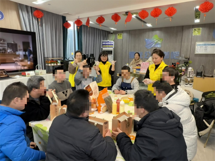 開展輪崗實訓(xùn),推動角色真實轉(zhuǎn)型 項目核心環(huán)節(jié)“今日我是主理人”輪崗實訓(xùn)于2026年1月29日在星光公益咖吧開展。實訓(xùn)圍繞咖啡吧服務(wù)全流程,設(shè)計迎賓、點單、制作、送餐等七大模塊,采用“分步教學(xué)—模擬演練—角色扮演”的漸進模式,支持學(xué)員在真實場景中完成從“學(xué)習(xí)者”到“服務(wù)者”的轉(zhuǎn)變。通過設(shè)置“安靜角”、配備一對一志愿者及可視化引導(dǎo),營造低壓學(xué)習(xí)環(huán)境,學(xué)員逐步掌握服務(wù)流程,在實踐中建立自信與價值感。