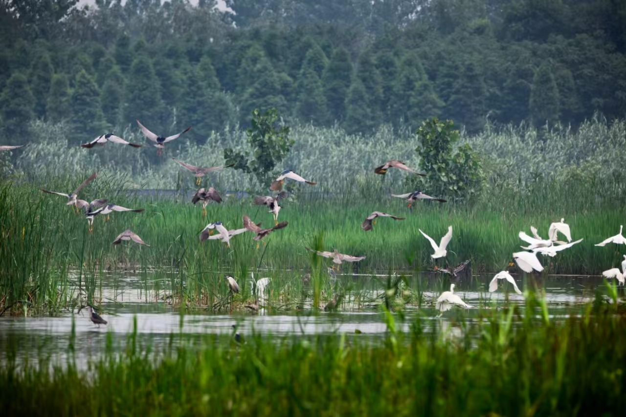 - 2024-10-14 23:26:12 · 奮進強國路 闊步新征程 | 泰州姜堰:溱湖濕地——草木葳蕤候鳥鳴金秋十月,溱湖濕地呈現(xiàn)出多樣的生物、多彩的空間,活脫脫像一幅鳥鳴波漾的水墨畫。微風(fēng)吹過,水波蕩漾,湖面上泛著柔光,岸邊草木葳蕤,時不時有鳥兒從草叢中飛出,或湖面盤旋,或草中覓食。 溱湖濕地內(nèi)的湖泊、河流等占景區(qū)總面積的37%左右,湛藍(lán)的湖泊、交織